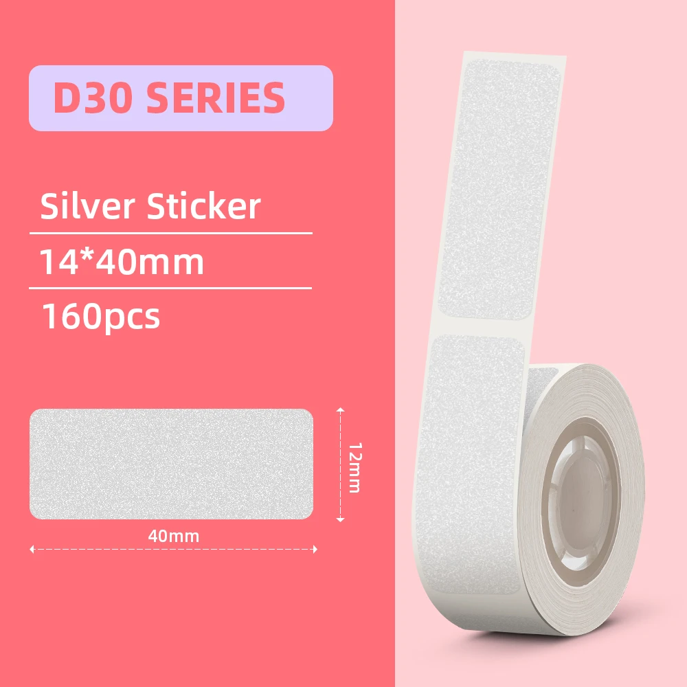 3 Rolls 14x40mm Phomemo D30 Silver Glitter Thermal Label Paper Transparency Sticker for D30 Portable Self-adhesive Label Printer