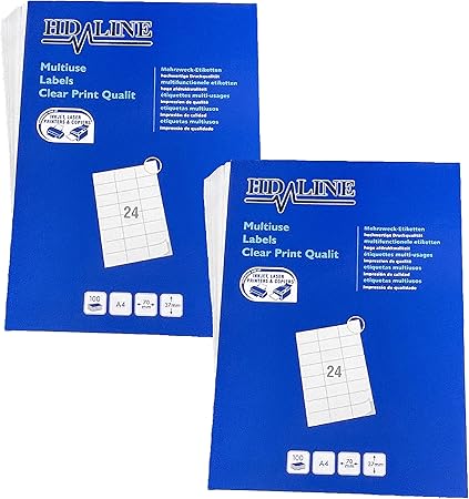 Leyf 2 x A4 Address Labels 70 x 37 mm, Matte Paper Self-Adhesive, Printable, Permanent Adhesive Universal Labels, (2 Pack x 100 Sheets x 24 Labels = ...