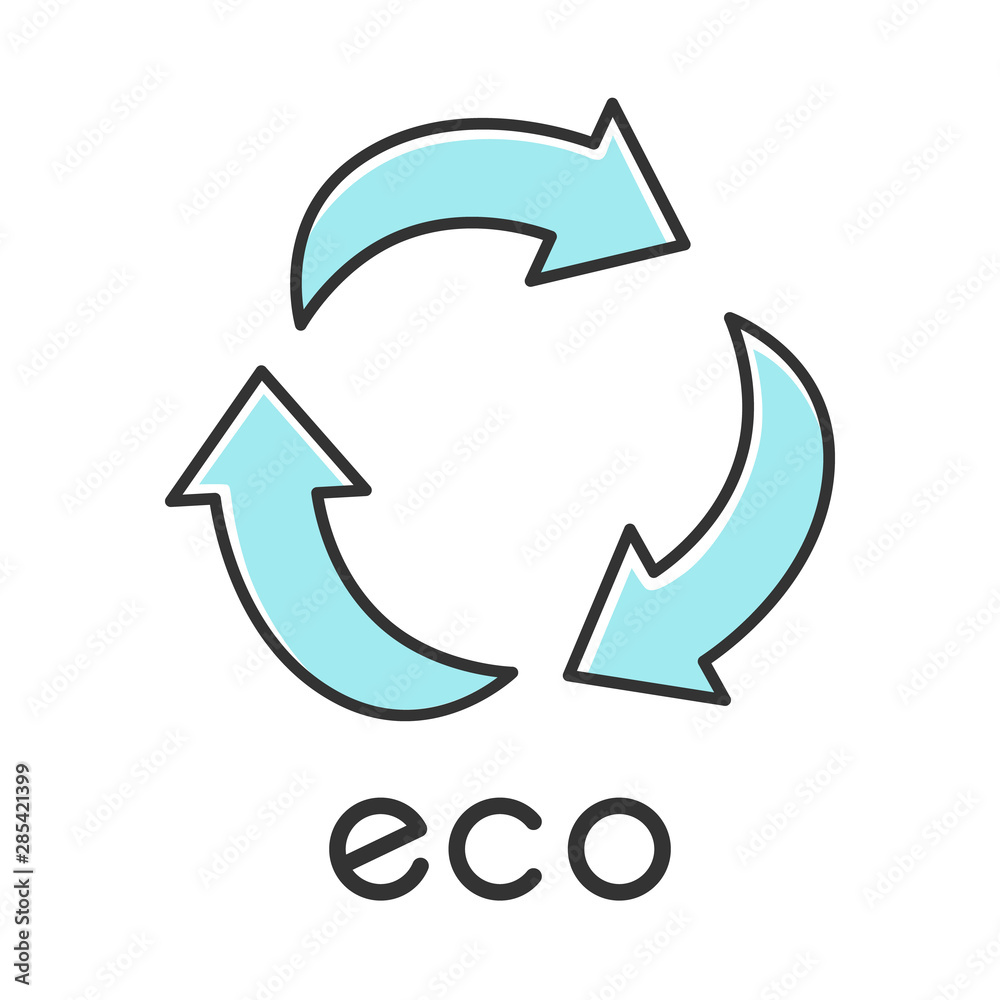 Eco label linear icon. Three curved arrow signs. Recycle symbol. Alternative energy. Environmental protection sticker. Thin line illustration. Contour ...