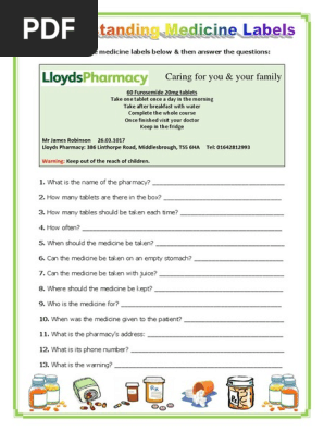 Reading prescription labels worksheets
